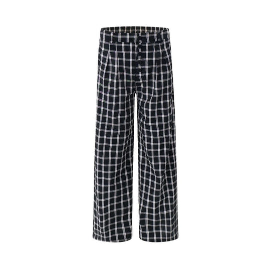 Wide-Leg High-Waist Plaid Trousers - Pants for Women
