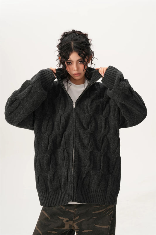 Cable Knit Zipper Cardigan Sweater Jacket
