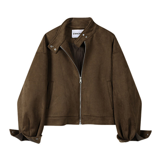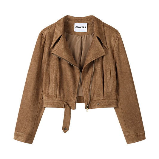 Women's Retro Brown Faux Leather Cropped Jacket