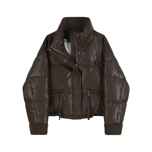 Shiny Puffer Jacket with Ribbed Cuffs