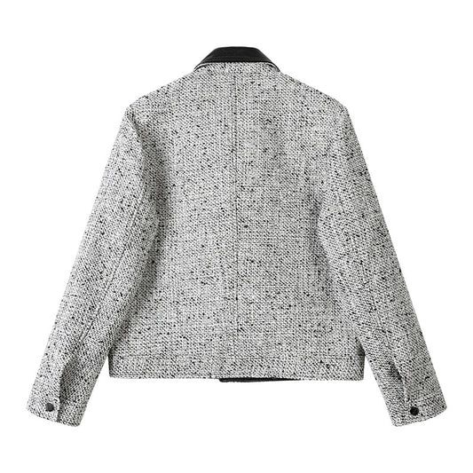 Elegant Retro Wool & Leather Collar Jacket