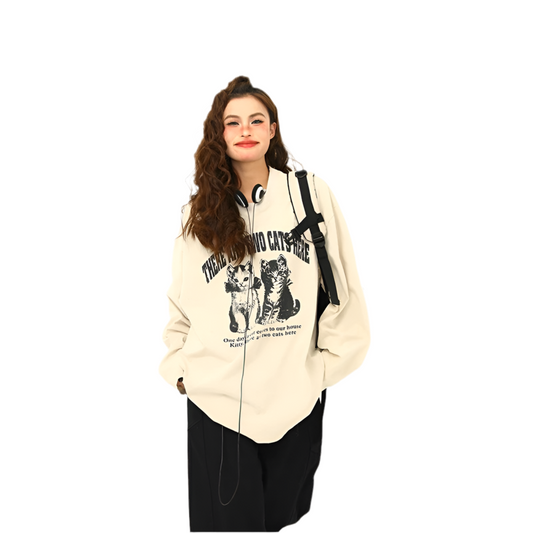 Full Sleeve Oversized Cat Graphic T-shirt