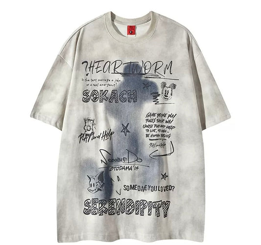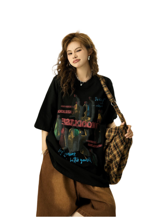 Playful Vintage Print Baggy T-Shirt