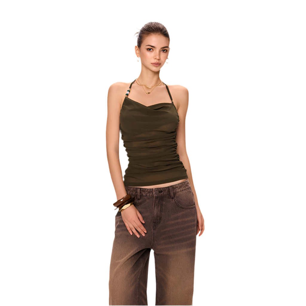 This chic mesh halter crop top is crafted for fashion-forward women who love versatile style. Featuring a ruched body with delicate mesh details, it offers both comfort and allure. The adjustable halter straps ensure a flattering fit, while the slim silhouette pairs seamlessly with high-waist jeans, skirts, or shorts. Perfect for summer outings, parties, or casual evenings, this top adds effortless charm to any look.