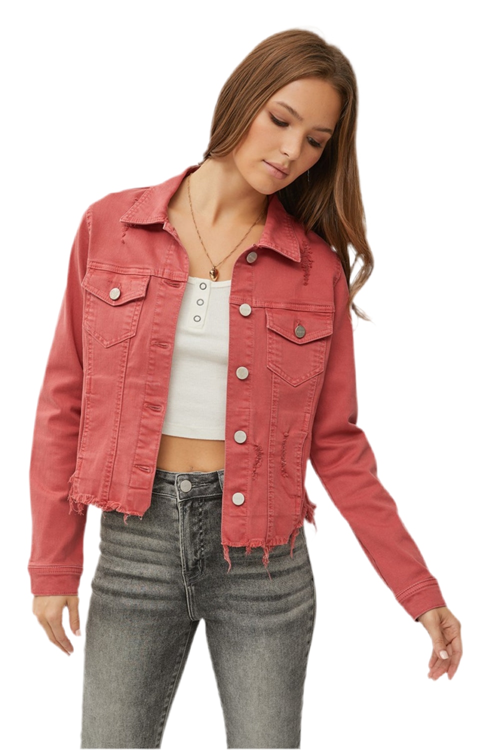 This Hem Button Up Cropped Denim Jacket is a trendy and versatile piece that will elevate your wardrobe. The cropped length adds a modern and stylish touch, while the button-up design gives it a classic and timeless appeal. Made from high-quality denim, this jacket is durable and will stand the test of time. The hem detailing adds a unique and eye-catching element, giving it a cool and edgy vibe. Whether you pair it with a dress, skirt, or jeans, this denim jacket is the perfect layering piece for any outfit. Whether you're going for a casual day look or a night out, this hem button-up cropped denim jacket is a must-have for your wardrobe.