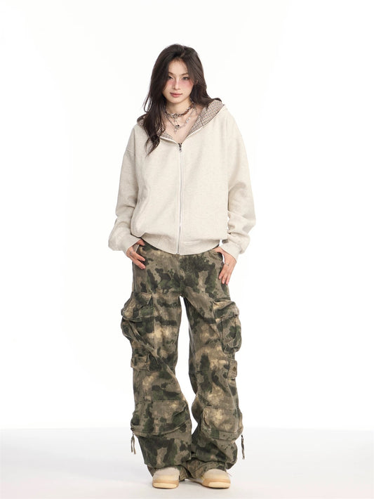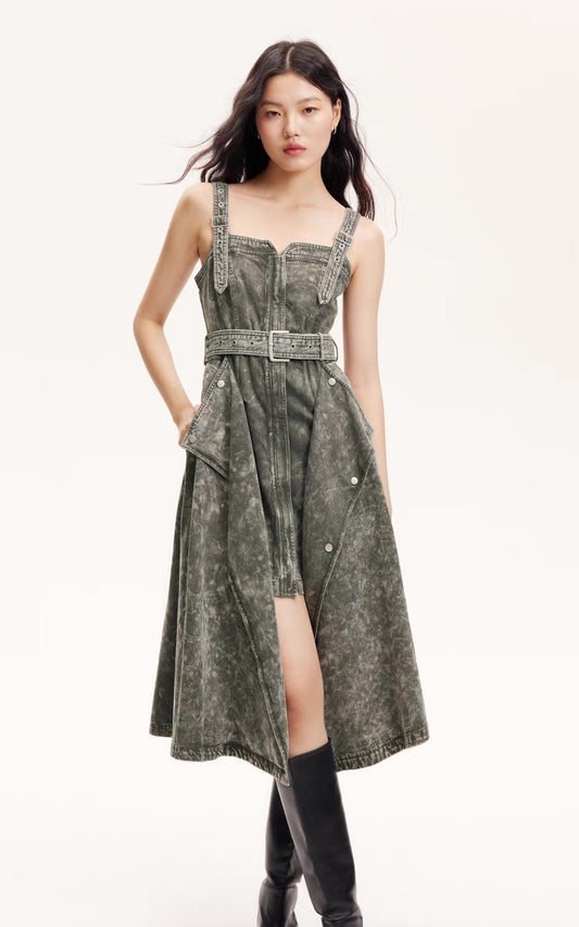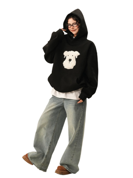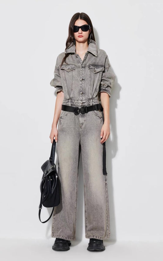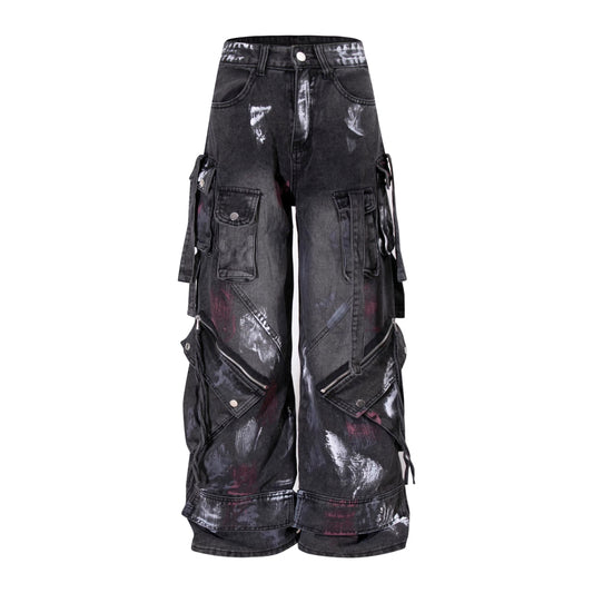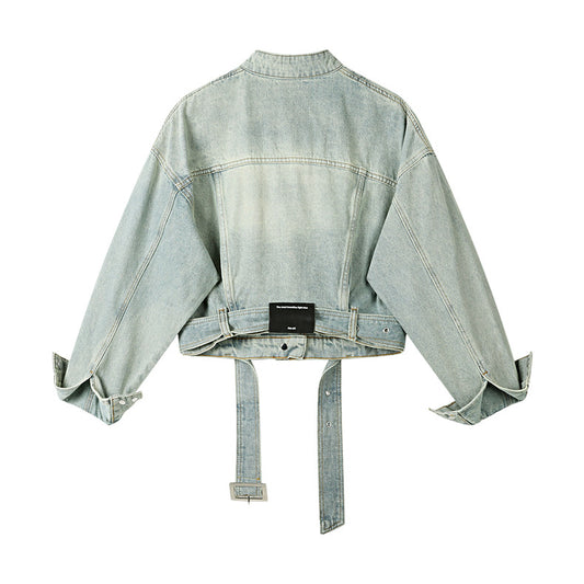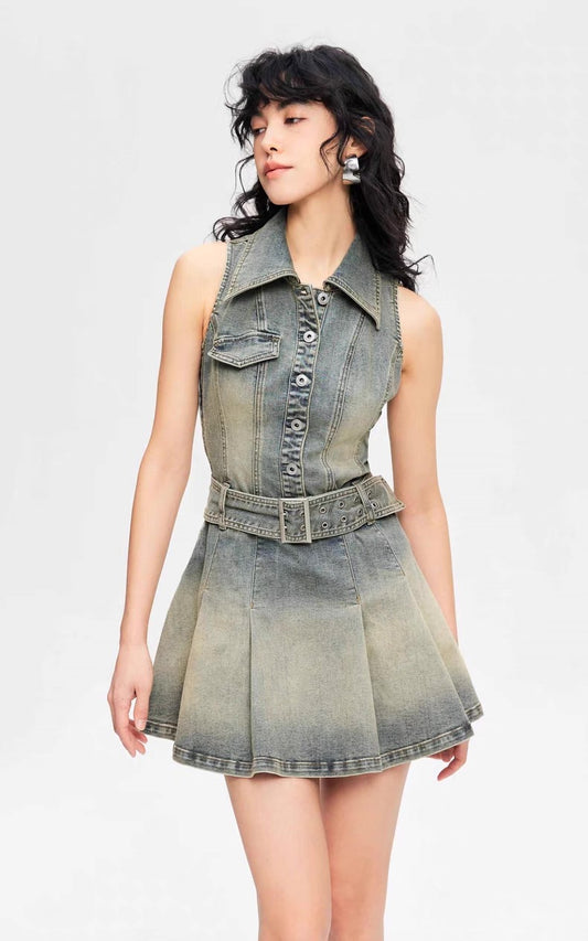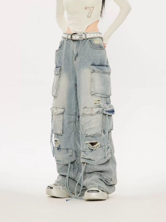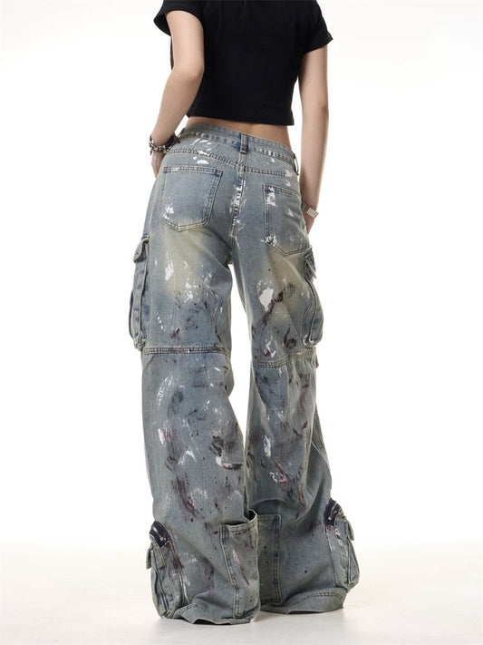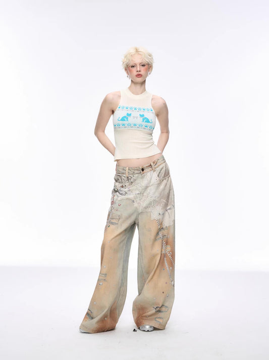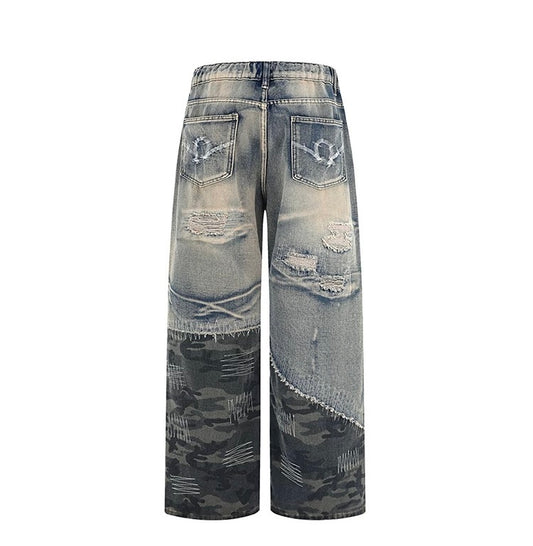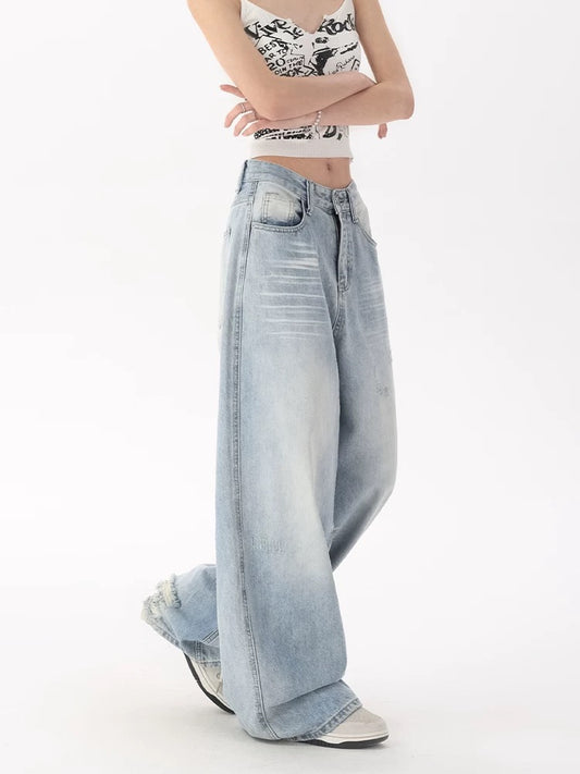 Vintage Blue Rip-Knee Wide Denim Jeans