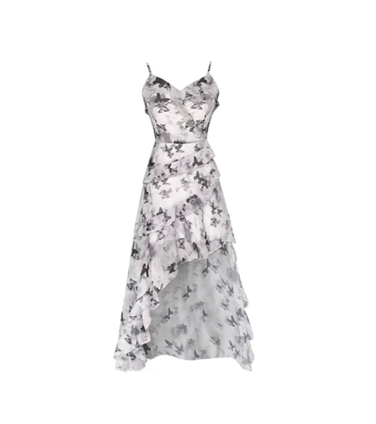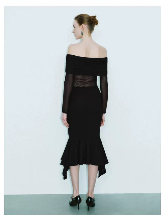 High-Low Eyelet Ruffled Off-Shoulder Dress